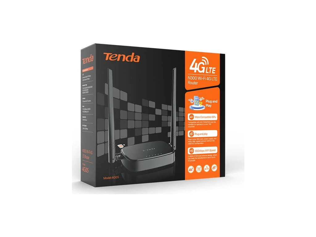 Tenda 4G05 Wi-Fi N300 4G / 3G LTE router, 2x WAN/LAN, 1x nanoSIM, IPv6, VPN, LTE Cat.4, CZ App