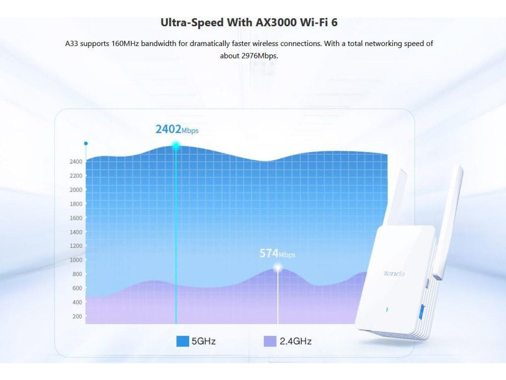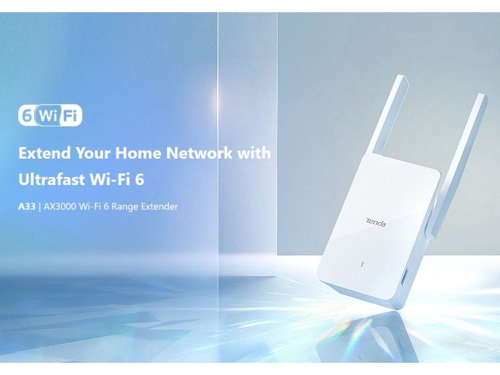 Tenda A33 - WiFi Range Extender AX3000 WiFi 6, opakovač 2976 Mb/s, 1x GLAN 1 Gb/s, WPS,2x 5dBi, WPA3