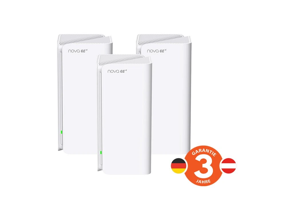 Třípásmový bezdrátový WiFi 6E Mesh systém pro pokrytí celého domu. Všechny tři moduly spolu navzájem komunikují a každý vytváří další pokrytí vašeho domu bezdrátovou sítí. Všechny moduly spolu komunikují souběžně v pásmu 2,4GHz, 5GHz a 6GHz. Díky kruhové komunikaci ja zajištěno mnohem vyšší pokrytí a stabilní rychlost než např. u řešení WiFi routeru s extendery. WiFi síť se navíc tváří pouze jako jediná (jednotné SSID), již se nemusíte přepojovat mezi několika sítěmi. Jednotlivé moduly si automaticky a to zcela bez výpadku nebo vašeho postřehnutí přepojují vaše koncové zařízení dle toho, kde se nacházíte. Např. při telefonování přes Internet můžete volně přecházet mezi patry svého domu, po zahradě, a jednotlivé moduly si váš mobilní telefon mezi sebou přepojují tak rychle, že nedochází k jedinému výpadku nebo přerušení. Navíc je možné dokoupit další moduly a zvýšit tak pokrytí sítě.