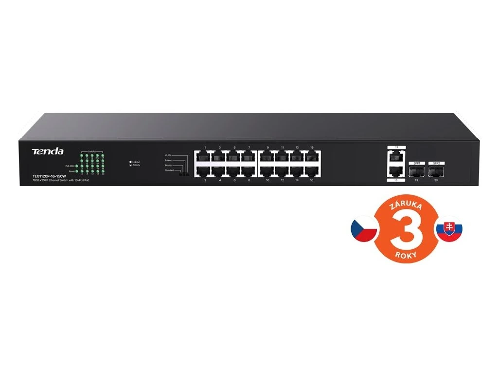 Tenda TEG1120P-16-150W je vhodná jak do menších a středních firem, tak i do větších domácností.