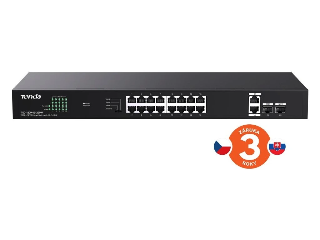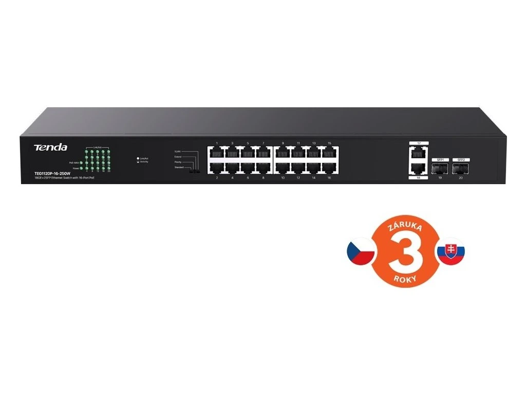 Tenda TEG1120P-16-250W je vhodná jak do menších a středních firem, tak i do větších domácností.