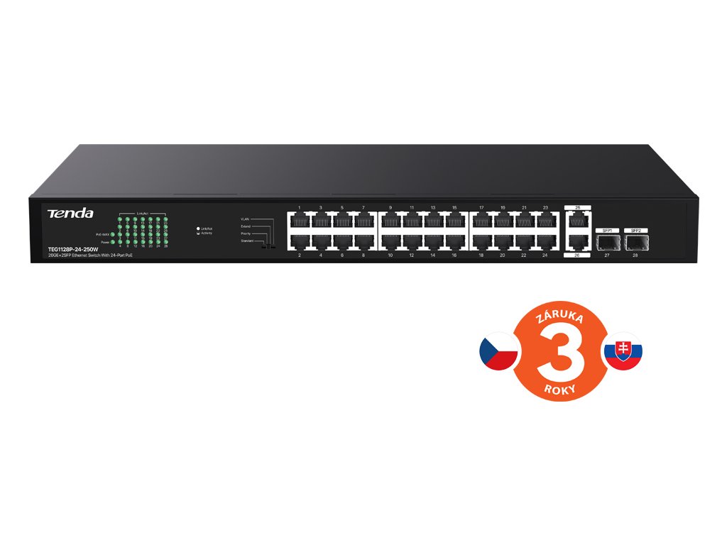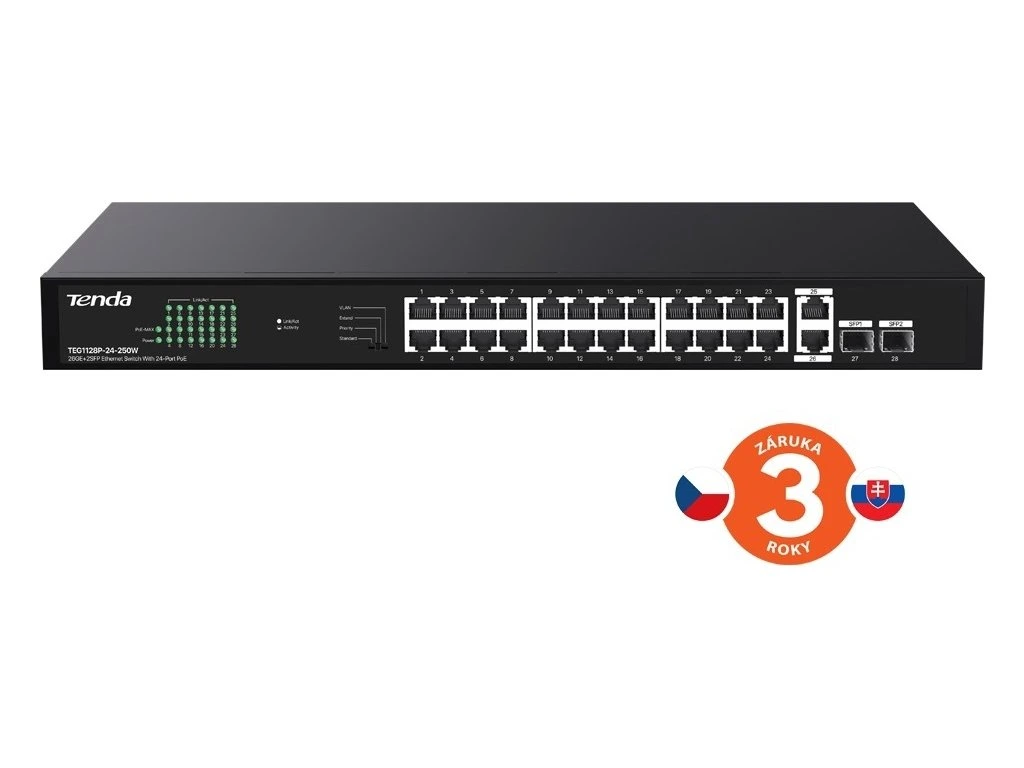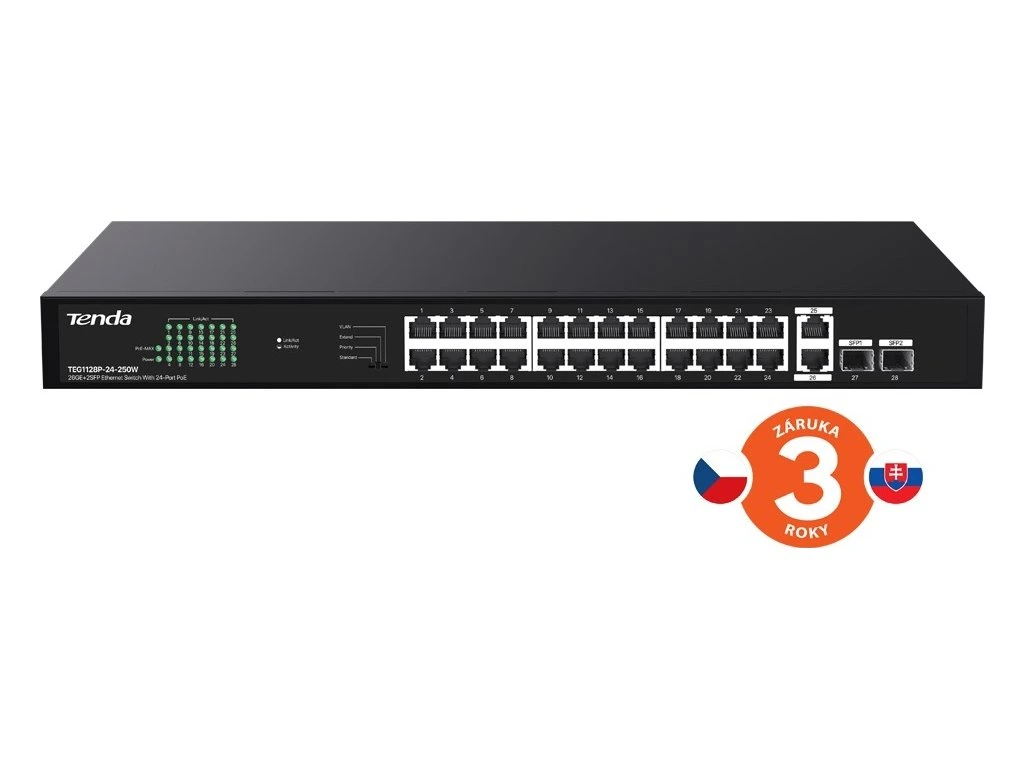 Tenda TEG1128P-24-250W je vhodná jak do menších a středních firem, tak i do větších domácností.