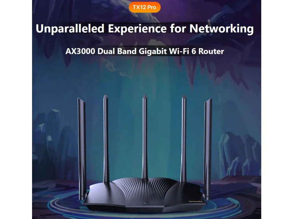 Tenda TX12 Pro AX3000 WiFi6 Router, 1x GWAN, 3x GLAN, IPv6, 5x 6dBi, WPA3, Mesh, CZ app