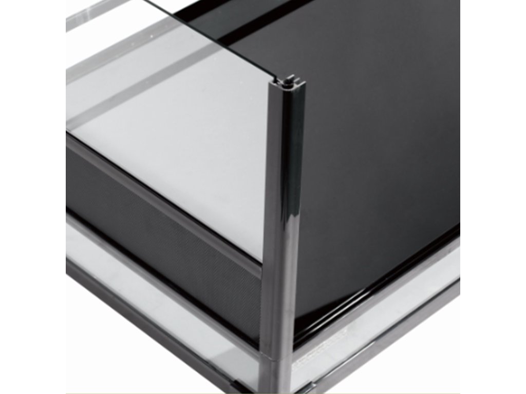 Terária jsou vybavena horním a spodním plastovým rámečkem, který umožňuje stohování terárií a umístění topných desek přímo na vnější stranu spodní skla.