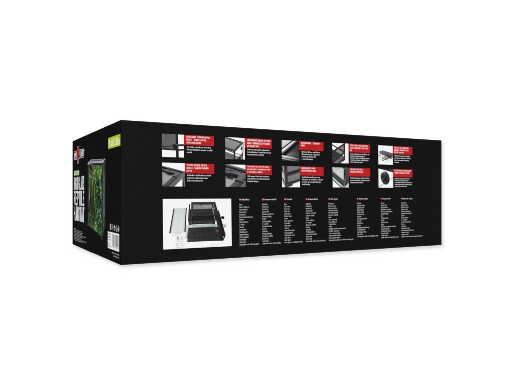 Jedinečná terária, snadno sestavitelná. Terária jsou dodávána v balení, které je ideální pro dopravu a manipulaci. Základna terária je vždy smontovaná a lepená, tím pádem se dá použít pro realizaci paludária. Jednoduchý systém konstrukce a přesné dílenské zpracování umožňuje snadné sestavení během několika minut.