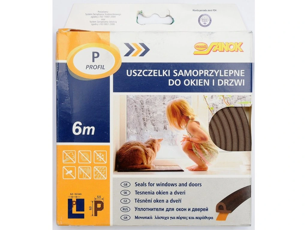 Těsnění do oken a dveří samolepící 9x5,5mm TYP P hnědé 6M