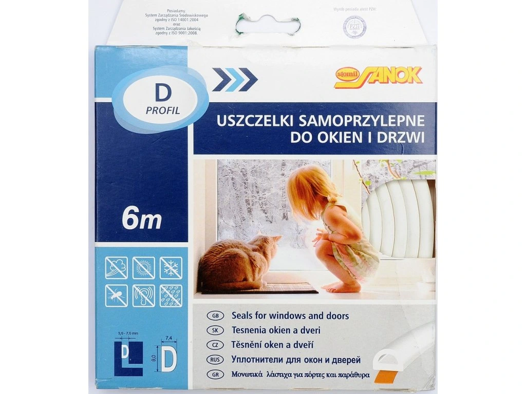 Těsnění do oken a dveří samolepící 9x7,4mm TYP D bílé 6M