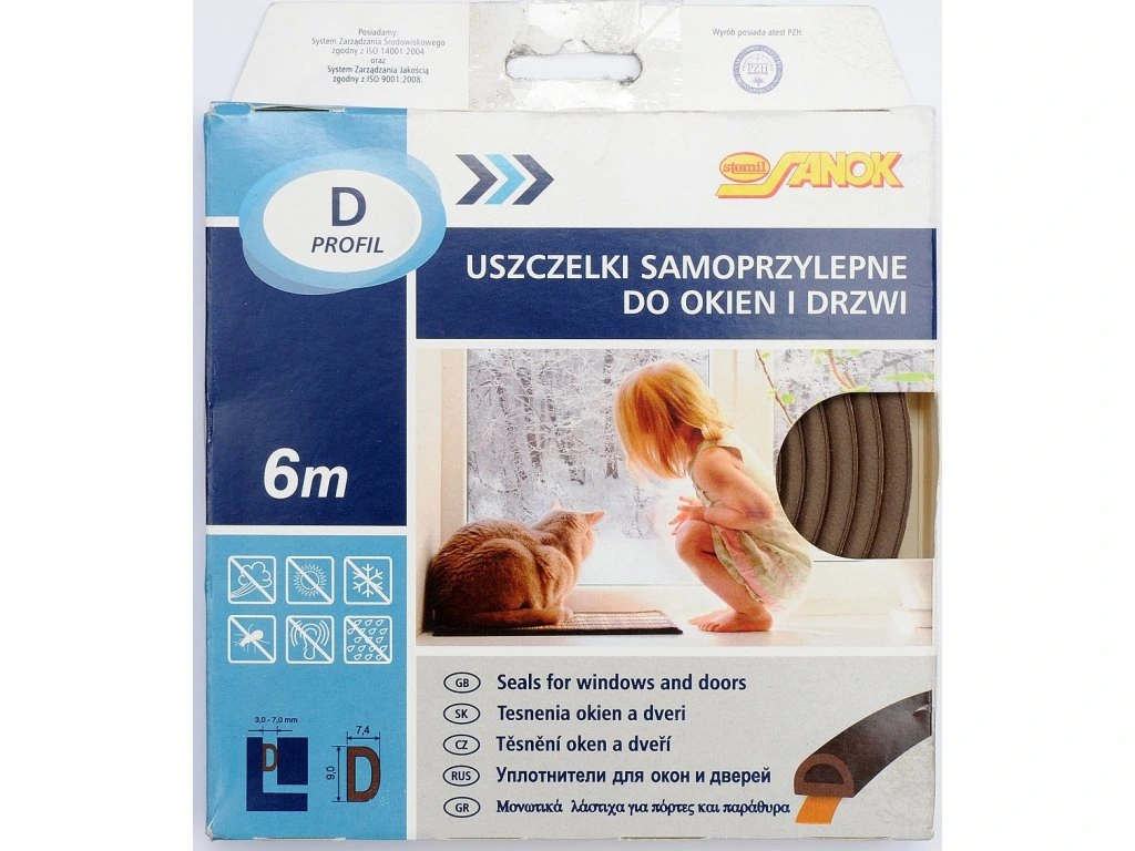 Těsnění do oken a dveří samolepící 9x7,4mm TYP D hnědé 6M