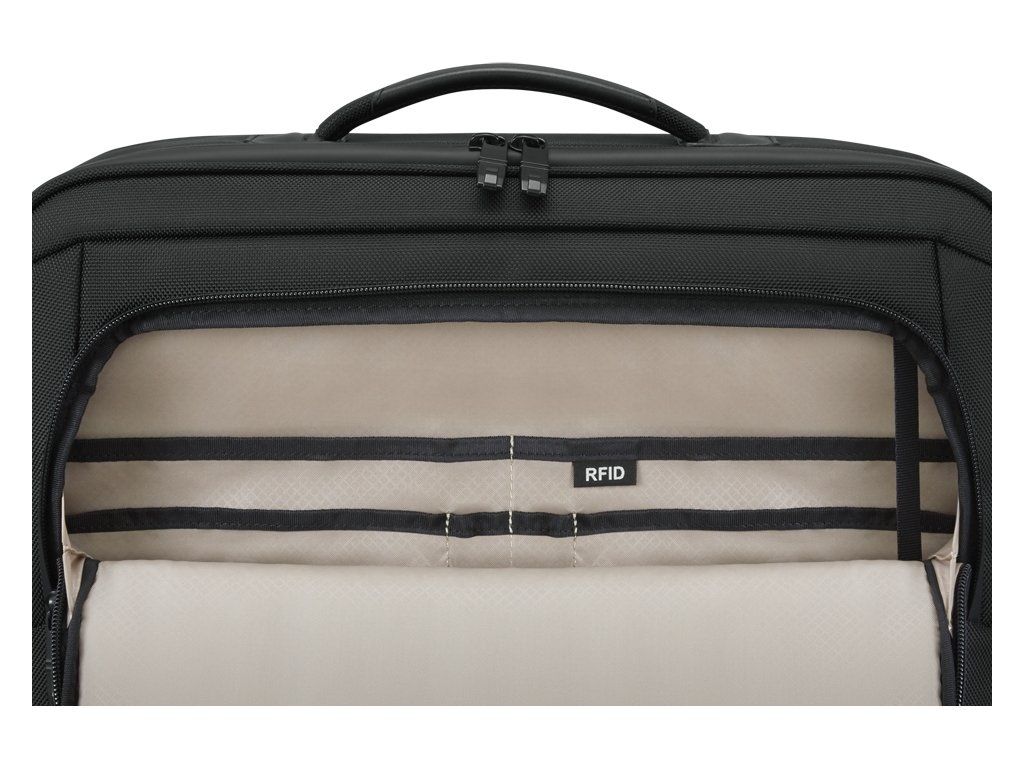 *Hlavní přihrádka je vybavena plnohodnotnou pracovní stanicí a úložnými kapsami na příslušenství a další drobnosti, včetně kapsy s blokováním RFID a klíčenky
