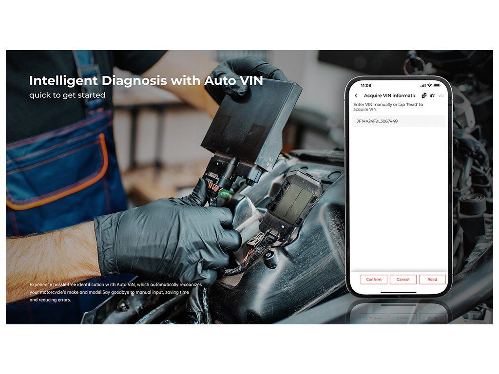 Zažijte bezproblémovou identifikaci pomocí funkce Auto VIN, která automaticky rozpozná značku a model vašeho motocyklu. Rozlučte se s ručním zadáváním, ušetřete čas a snižte počet chyb.