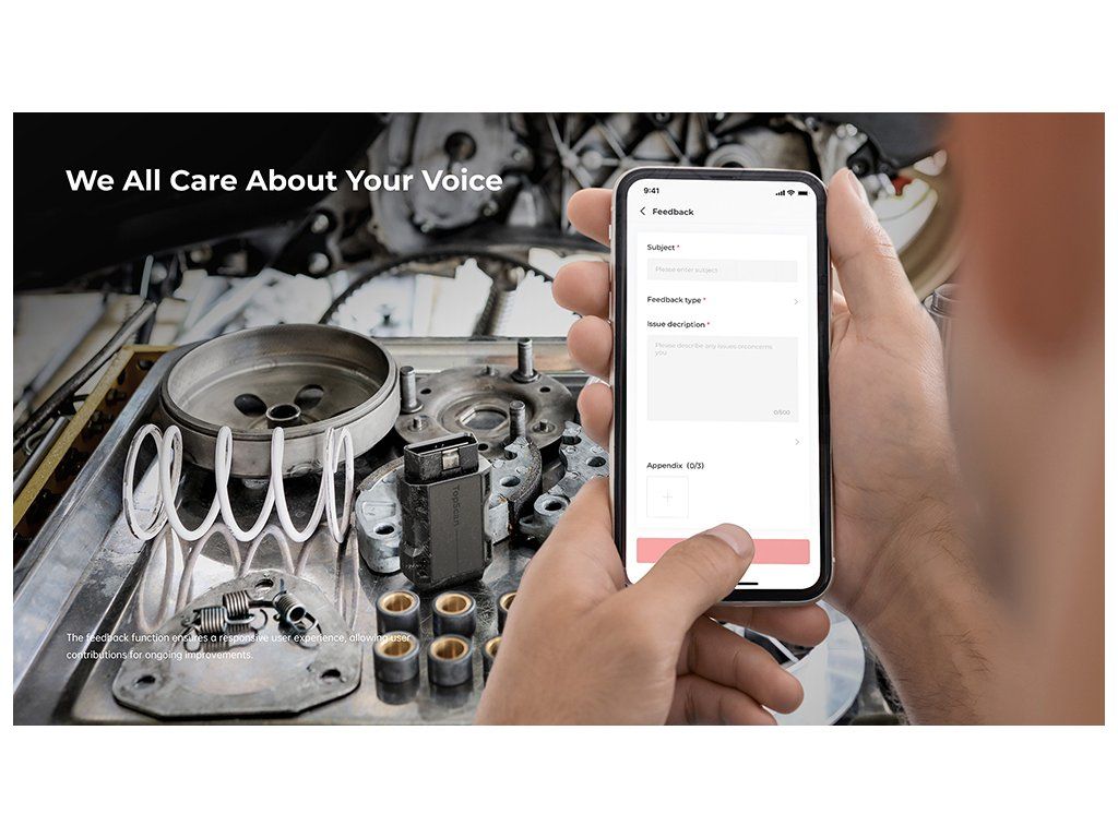 Díky funkci zpětné vazby mohou uživatelé jednoduše sdílet své postřehy přímo s výrobcem. Společnost TOPDON tak může své produkty průběžně vylepšovat na základě skutečných zkušeností a potřeb uživatelů.