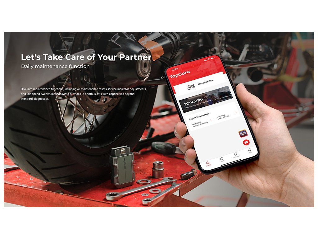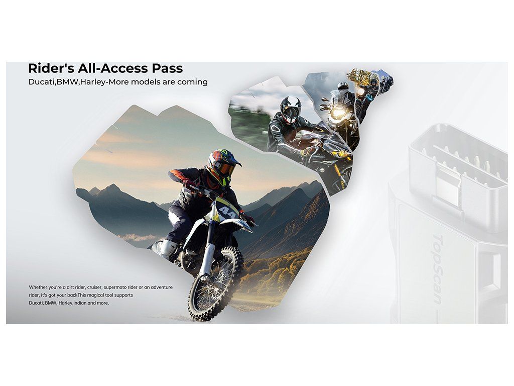 TopScan Moto od společnosti TOPDON® mění pravidla hry pro motocyklové nadšence a nabízí kapesní diagnostiku, která promění chytrý telefon v přesný diagnostický nástroj pro motocykly. Ať už jste příležitostný jezdec, zkušený kutil nebo profesionální mechanik, TopScan Moto poskytuje komplexní diagnostiku systému a funkce údržby bez námahy.