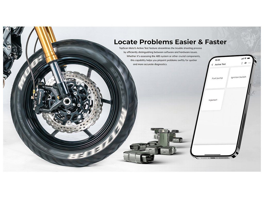 Funkce Active Test softwaru TopScan Moto zjednodušuje proces řešení problémů tím, že účinně rozlišuje mezi softwarovými a hardwarovými problémy. Ať už jde o posouzení systému ABS nebo jiných důležitých součástí, tato funkce vám pomůže přesně určit problémy pro rychlejší a přesnější diagnostiku.