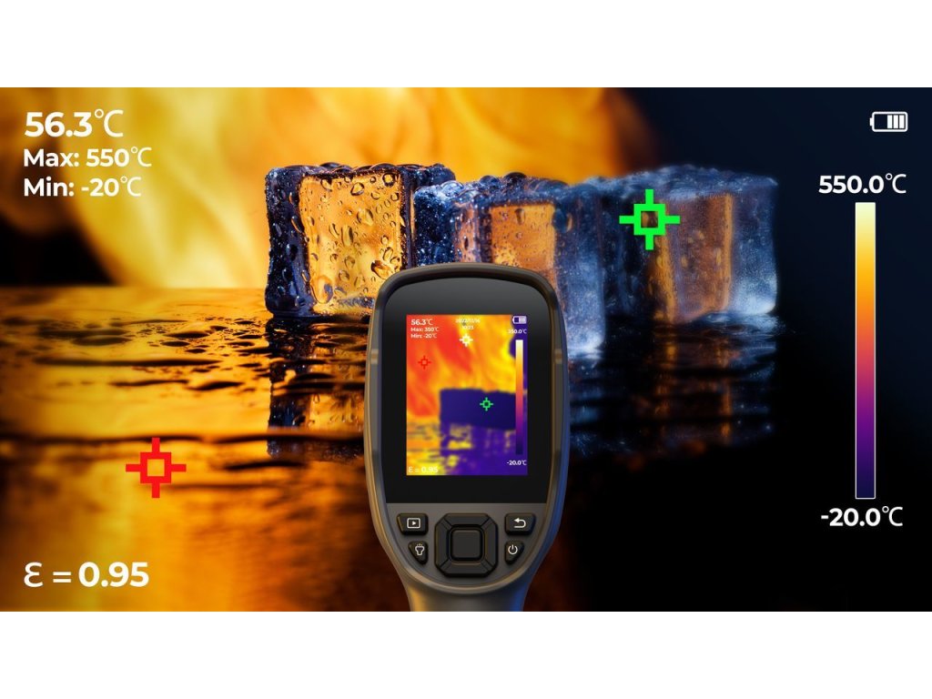 TC005 nabízí široký rozsah měření teploty -20°C - +550°C. Měření teploty s přesností ±2°C.