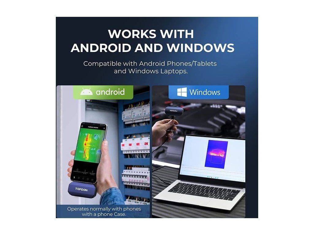 Termokameru TOPDON TCView můžete propojit jak s mobilním telefonem s operačním systémem Android, tak s PC, nebo notebookem s Windows (Version 1.0.0)