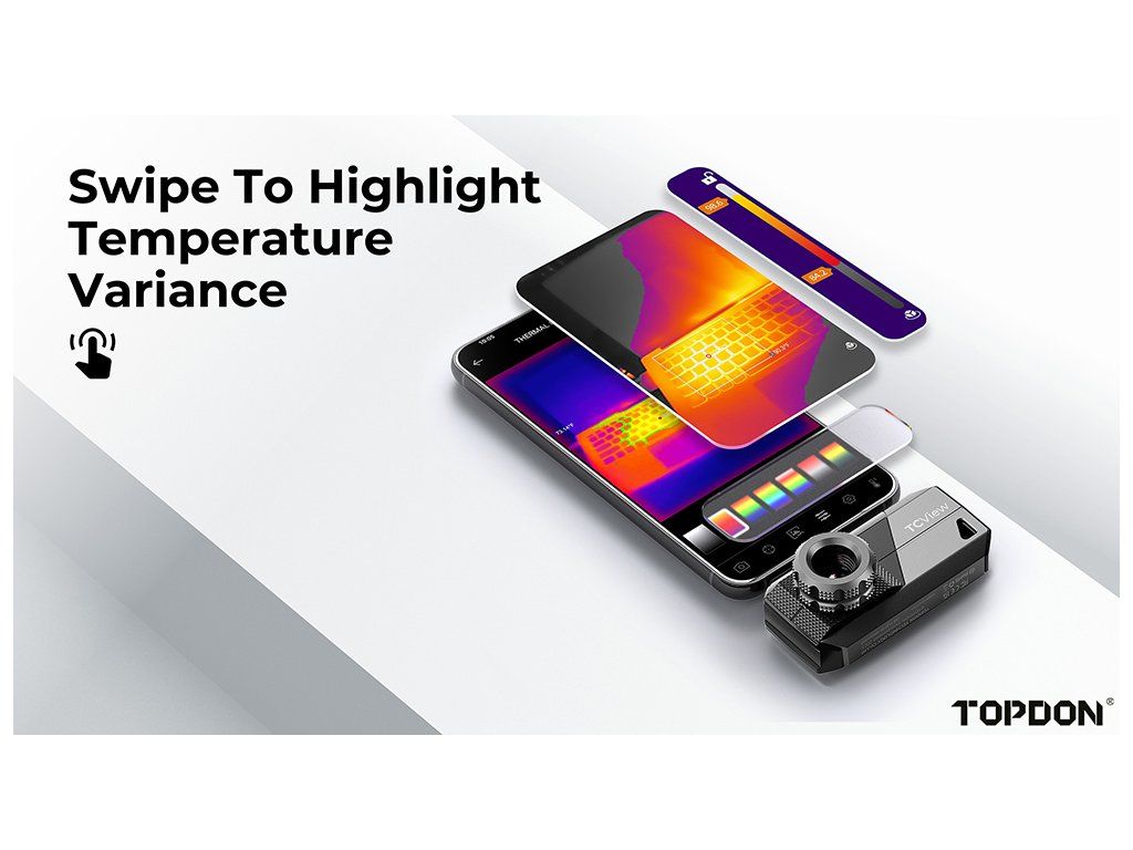 Pomocí jednoduchého pohybu prstem můžete snadno přizpůsobit termální zobrazení a zaměřit se na klíčové teplotní oblasti, které vás zajímají. Intuitivní barevný pruh umožňuje rychlé nastavení teplotního rozsahu, na který chcete upozornit. Pokud teploty překročí vámi nastavený limit, automaticky se zobrazí v tučných černobílých odstínech nebo jiných barvách dle vašeho výběru, což okamžitě zvýrazní teplotní rozdíly a zajistí snadnou interpretaci teplotních změn.