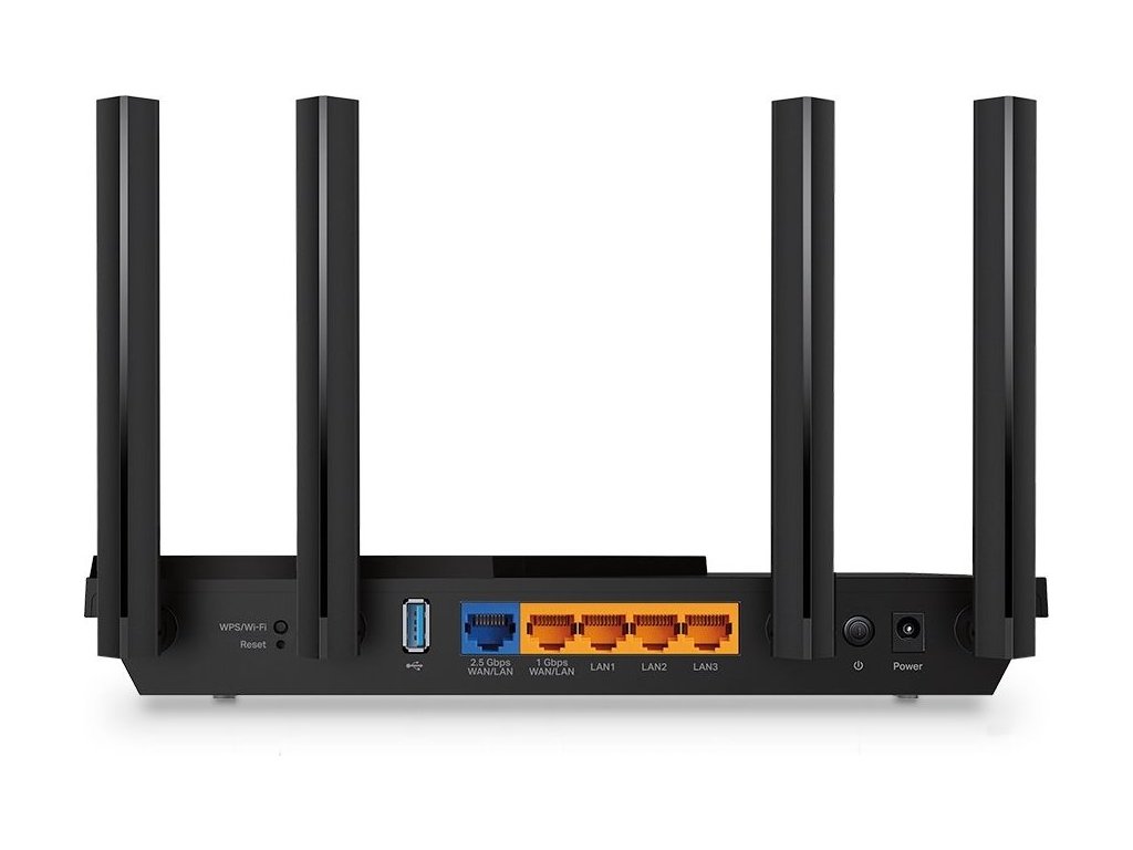 - 2,5G multigigabitový port – 1× 2,5Gb/s WAN/LAN port + 1× 1Gb/s WAN/LAN port + 3× gigabitové LAN porty + 1× USB 3.0 port zaručují maximální flexibilitu a zvýšenou propustnost