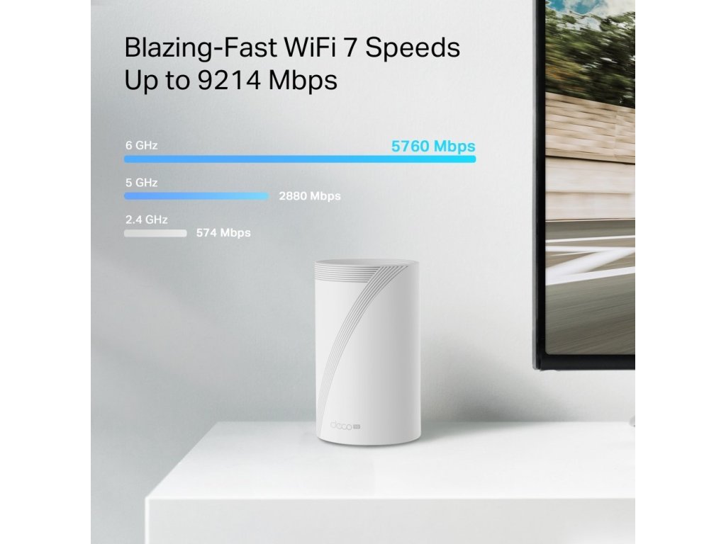 Díky pokročilé mesh technologii můžete zařízení kombinovat s dalšími jednotkami Deco a vytvořit tak jednotnou síť s plným pokrytím po celé domácnosti. Zařízení podporuje funkci Multi-Link Operation (MLO) pro efektivnější využití dostupných pásem a AI-Roaming pro plynulý přechod mezi přístupovými body bez přerušení připojení.