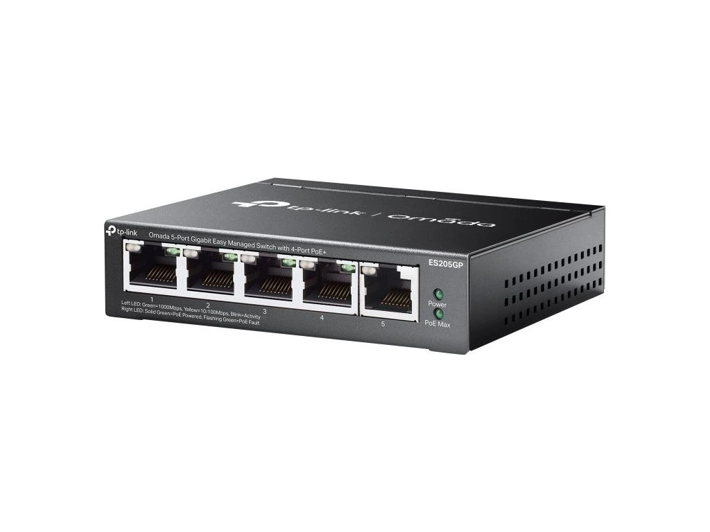 TP-Link ES205GP, Omada 5-Port Gigabit Easy Managed Switch, 1x GLAN, 4x GLAN PoE+, 65W PoE budget