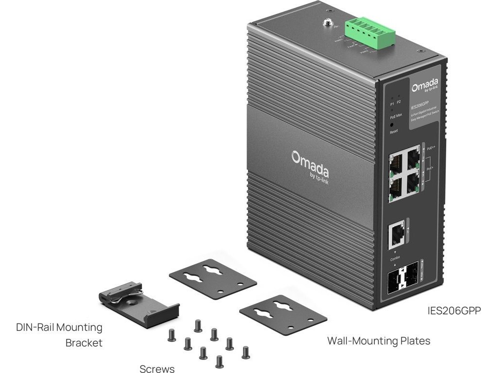 TP-Link IES206GPP - 6-portový Omada Industry PoE Switch, 1x GLAN PoE++, 3x GLAN PoE+, 1x SFP, 1x Combo Gigabit SFP