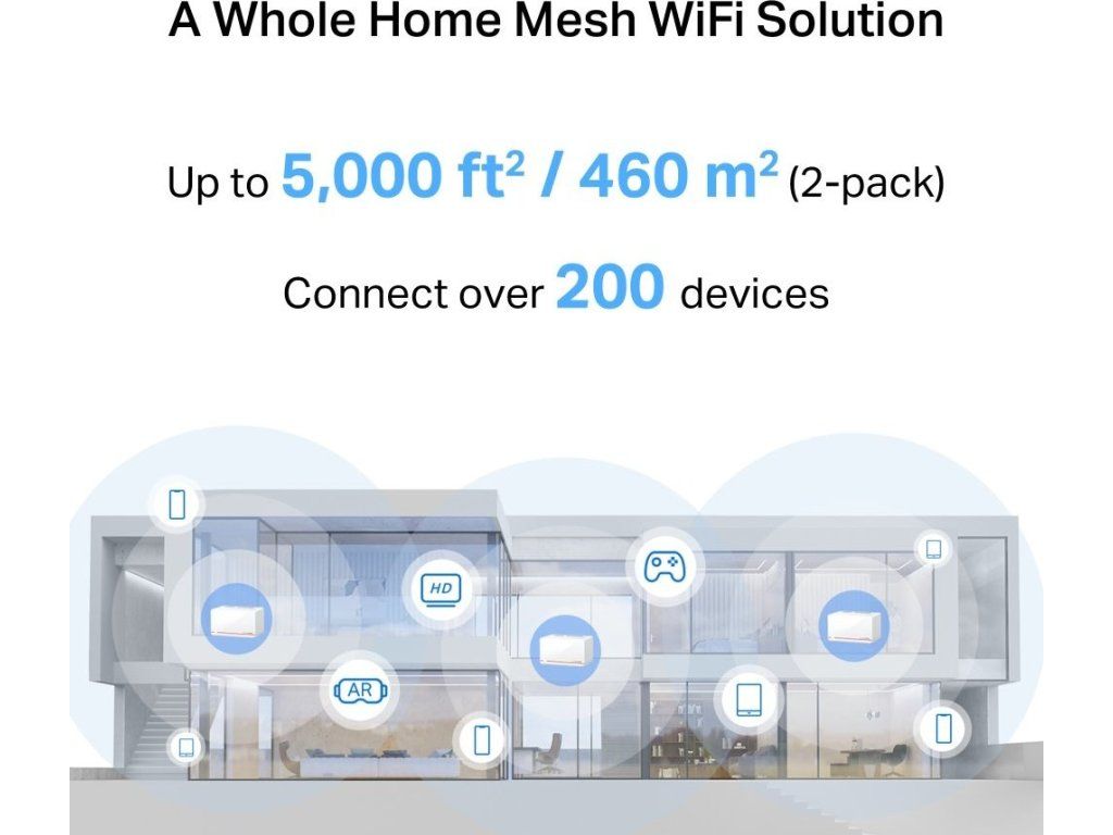 Díky pokročilé technologii Multi-Link Operation (MLO) a kanálům 160 MHz s modulací 4K-QAM poskytuje systém o 20 % více dat než Wi-Fi 6 při současně 4× nižší latenci. Mesh síť podporuje připojení více než 200 zařízení současně a zajišťuje bezproblémový roaming bez výpadků signálu při pohybu po domě.