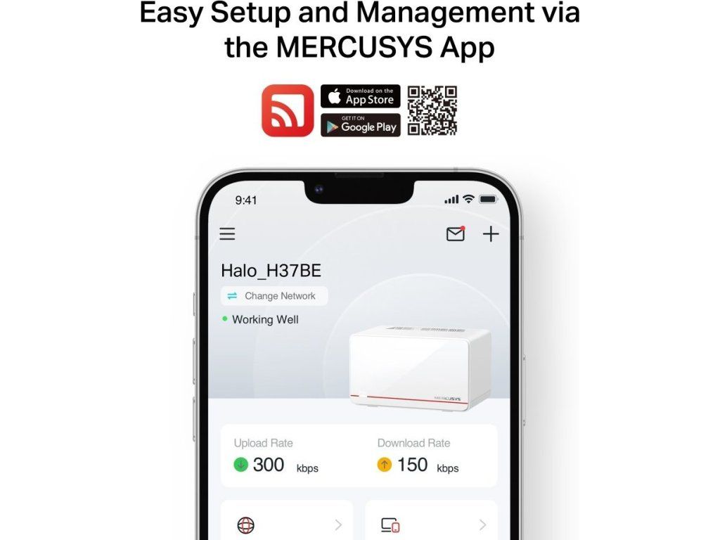 - Snadné nastavení a správa prostřednictvím mobilní aplikace Mercusys