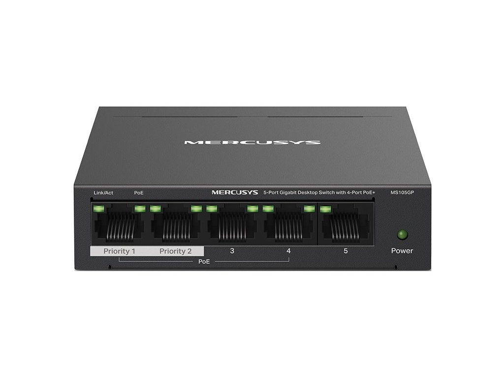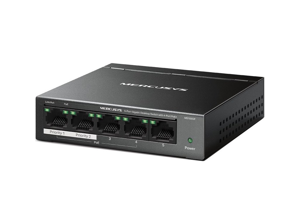 TP-Link Mercusys MS105GP Switch 5-Port, 4× Gigabit PoE+, 1× GLAN, 802.3af/at, 65 W
