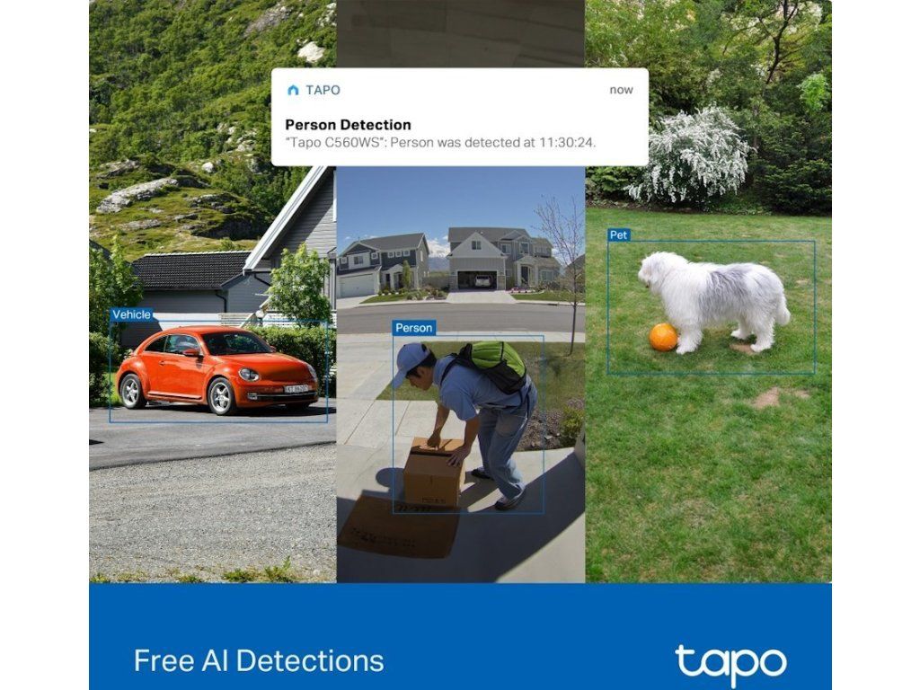Zachyťte barevné detaily i ve tmě díky bodovému osvětlení a senzoru světla hvězd. Tapo C560WS nabízí také skrytý infračervený černobílý režim a inteligentní režim, který se automaticky přepne do barevného režimu při detekci osoby.