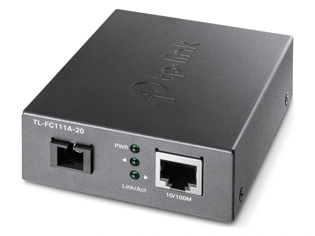 TP-Link TL-FC111A-20Media konvertor typu ethernet/optika využívající technologii WDM (Wavelength Division Multiplexing), který je vybaven jedním 10/100 Mbps RJ-45 portem a single-mode s SC konektorem. Na druhé straně optického vlákna se použije konvertor TL-FC111B-20.