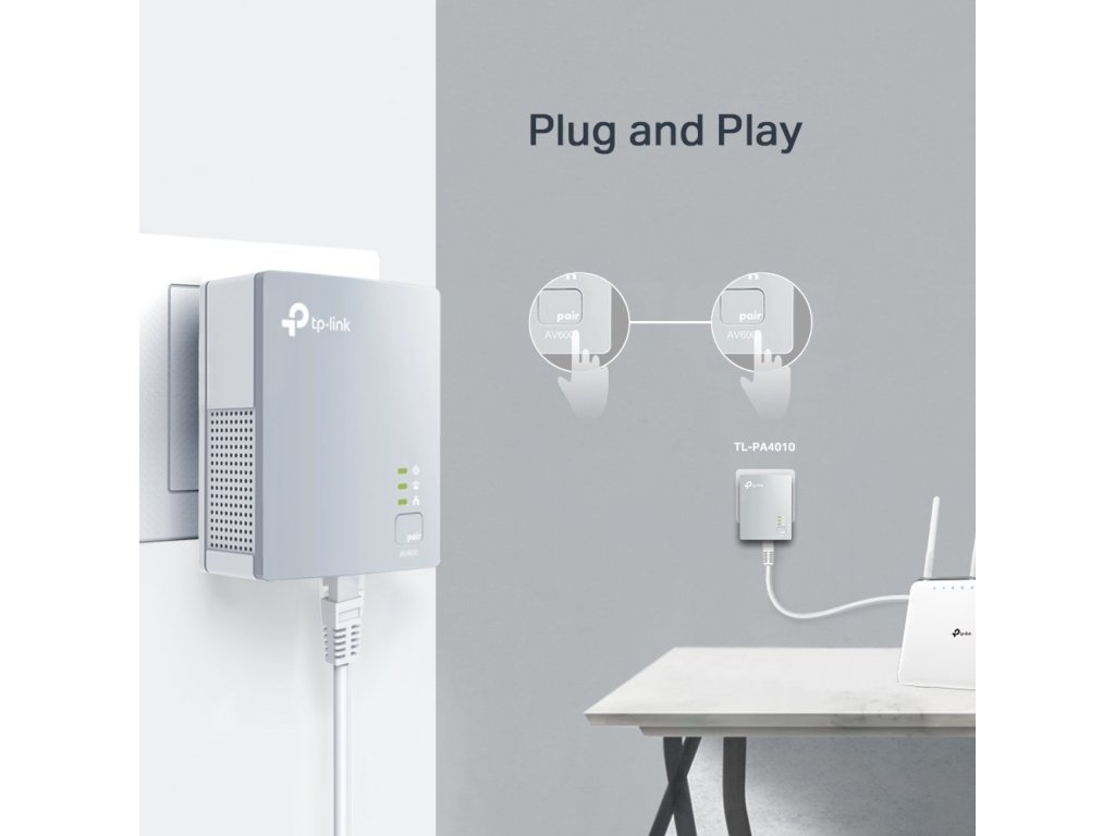 Využitím pokročilé HomePlug AV technologie nabízí TL-PA4010KIT uživatelům stabilní vysokorychlostní přenos dat rychlostí až 600 Mbit/s na vzdálenost až 300 metrů. S rychlostí až 600 Mbit/s umožňuje TL-PA4010KIT provoz aplikací s vysokými nároky na přenosovou kapacitu jako je přenos HD videa, hraní online her a přenos velkých souborů, a mění váš domov na robustní vysokorychlostní síť.