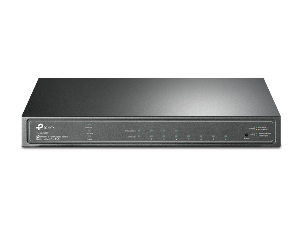 TP-Link TL-SG2008P JetStream 8-Port Gigabit Smart Switch with 4-Port PoE+. TL-SG2008P je plně kompatibilní s PoE zařízeními, jako jsou IP kamery, přístupové body a IP telefony. Funguje také s kabelovými zařízeními nepodporujícími PoE, jako jsou počítače, tiskárny a IPTV, a poskytuje gigabitová připojení.