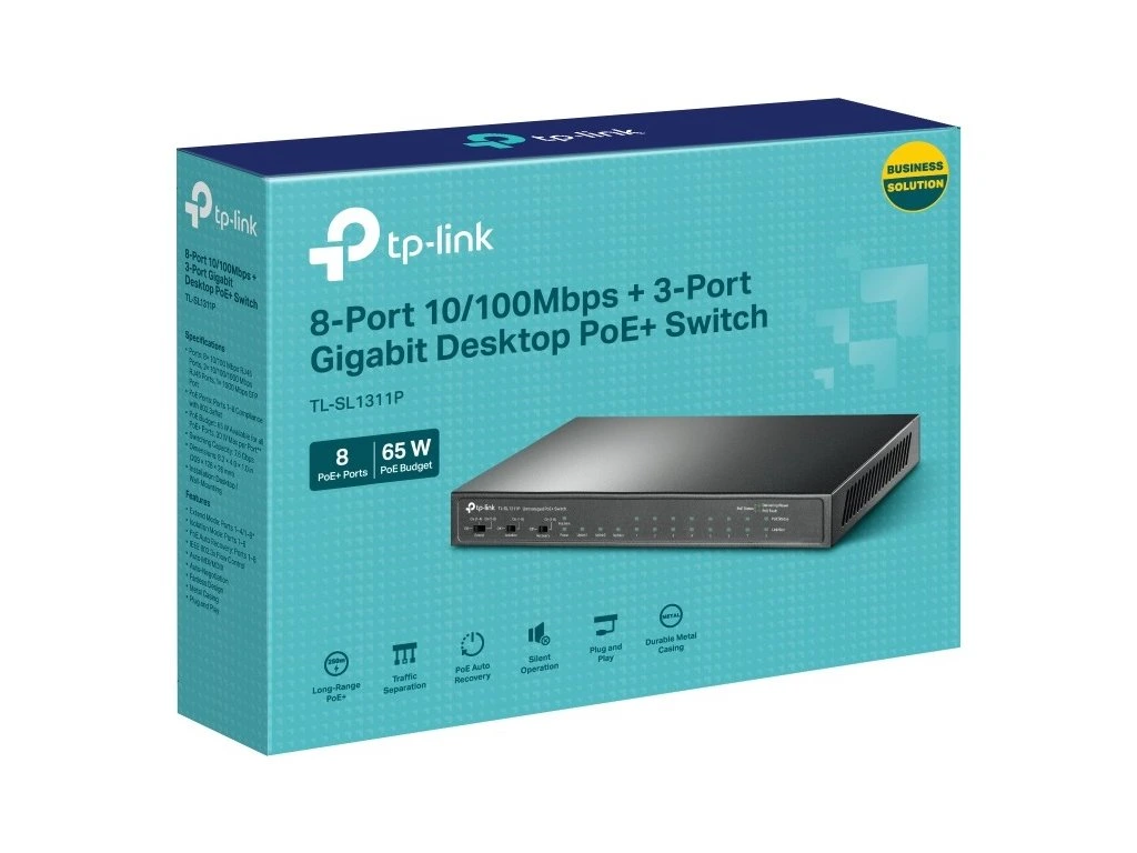 TP-Link TL-SL1311P 8xFE POE+ 65W 3xGb nonPOE,1xSFP CCTV switch