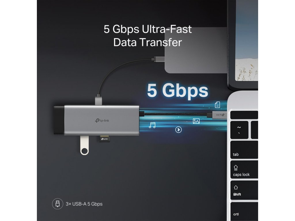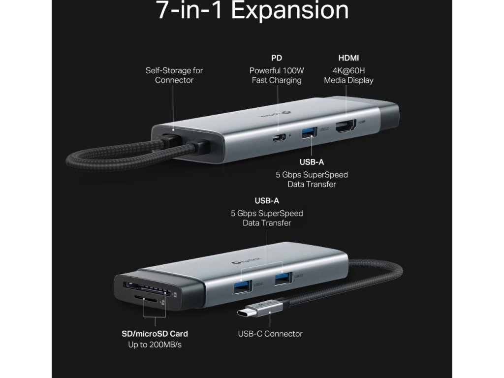 TP-Link UH7021C USB-C Hub na 1x HDMI 4K při 60Hz, 1x USB-C 100W PD, 3× USB-A, SD