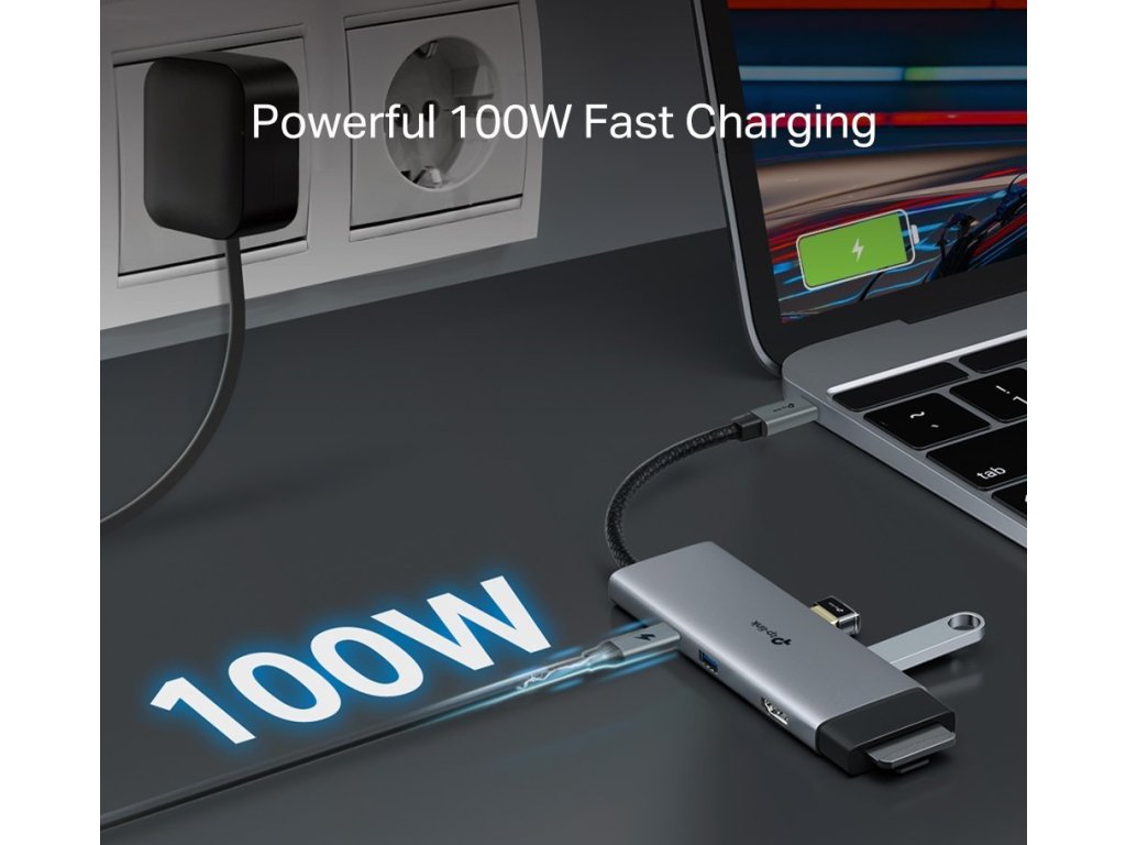Díky podpoře Power Delivery s výkonem až 100 W můžete nabíjet notebook nebo jiné zařízení výkonem až 85 W i během používání všech funkcí hubu. Zbývajících 15 W je vyhrazeno pro provoz ostatních rozhraní.