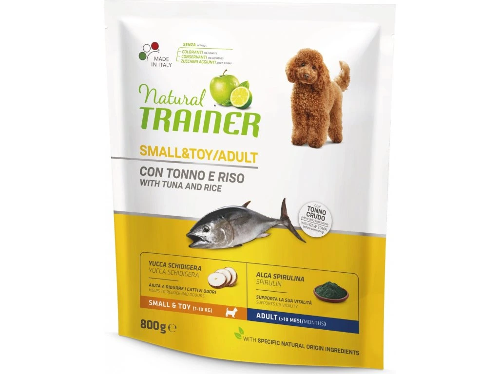 Krmivo speciálně navržené pro dospělé psy malých a trpasličích plemen (do 10 kg). Dospělí psi (od 10 m) mají odlišné požadavky na výživu než štěňata, která jsou ve vývinu, proto je nutné ve vhodnou dobu vyměnit krmivo za to určené dospělým psům. Krmivo Trainer Natural obsahuje mimo jiné řasu Spirulina, která celkově podporuje vitalitu, a kořen juky pro snížení zápachu exkrementů. Krmivo má lahodnou chuť ryby a rýže, které neodolá ani ten nejmlsnější psí jazýček, a zároveň dodá vašemu mazlíčkovi vše, co potřebuje pro spokojený život. Bez barviv, konzervantů a přidaných cukrů. Vyrobeno v Italii.