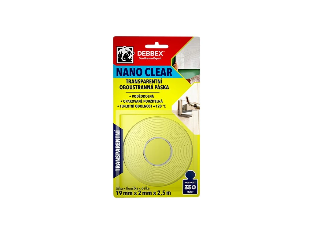 Transparentní oboustranná páska NANO CLEAR 19 mm × 2 mm, délka 2,5 m 2,5 m transparentní