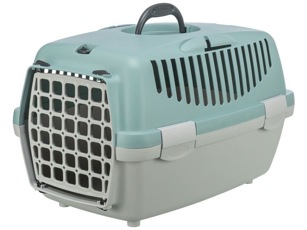 - přepravka s rukojetí a předními dvířky s mřížkou