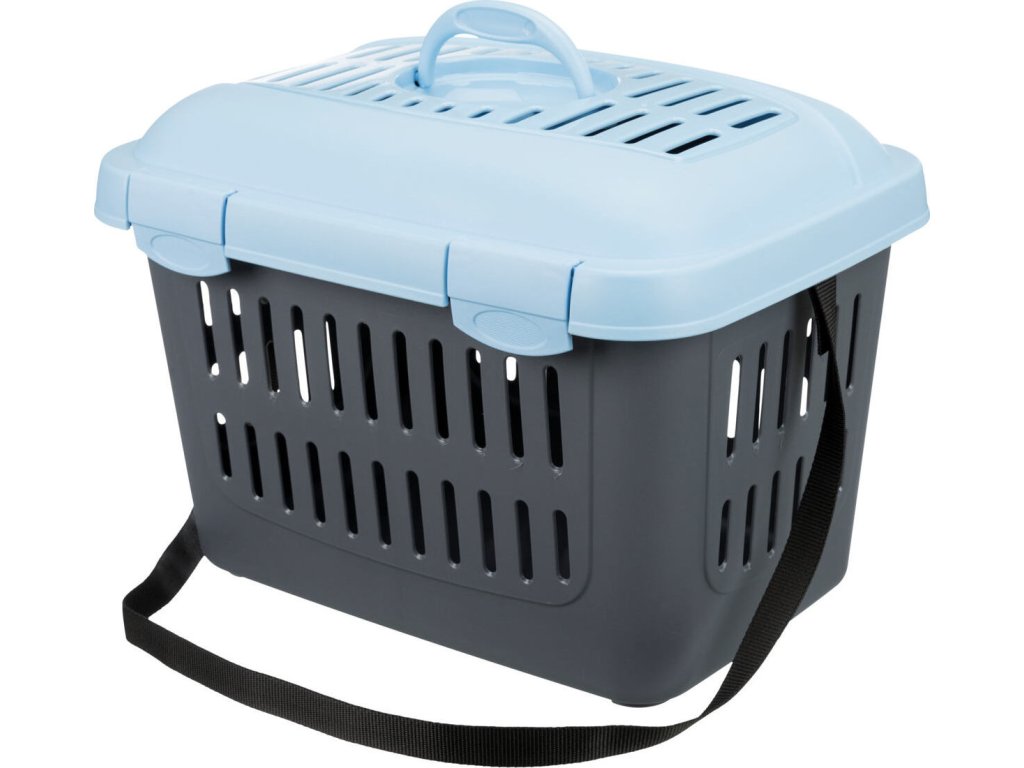 Transportní box MIDI CAPRI s popruhem, 44x33x32cm (max. 5kg), světle šedá/tyrkysová