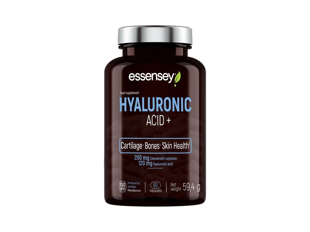 Hyaluronic Acid + značky Essensey (Trec Nutrition) nabízí chondroitin sulfát, kyselinu hyaluronovou, L-prolin a vitamín C, který přispívá k normální tvorbě kolagenu pro normální funkci chrupavek, kostí a kůže.