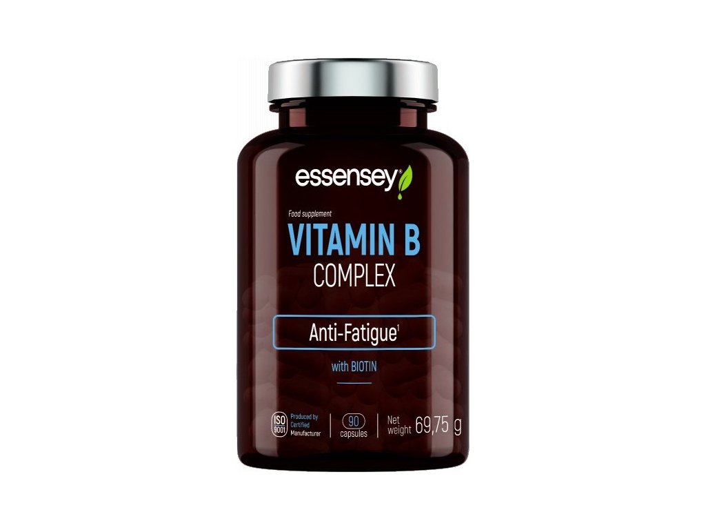 Vitamin B Complex značky Essensey (Trec Nutrition) nabízí komplex vitamínů B s biotinem (B-komplex: B1, B2, B3, B5 - pantothenová kyselina, B6, B8 - inositol, B10 - PABA, cholin, B9 - listová kyselina, B12). Riboflavin, niacin, vitamín B6 a B12 přispívají ke snížení únavy a vyčerpání. Thiamin, riboflavin, B6, B12 a biotin přispívají k normálnímu energetickému metabolismu.