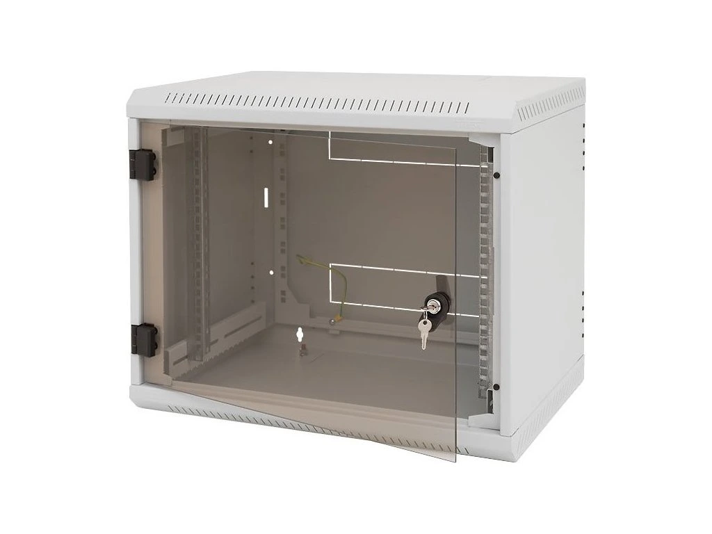 Triton RBA 19" 6UJednodílný nástěnný rozvaděč s krytím IP20, nosnost při správném zavěšení 60 kg. Dveře celoskleněné s bezpečnostním tvrzeným sklem 4 mm, robustní svařovaná konstrukce. Součástí rozvaděče jsou dvě posuvné vertikální lišty.