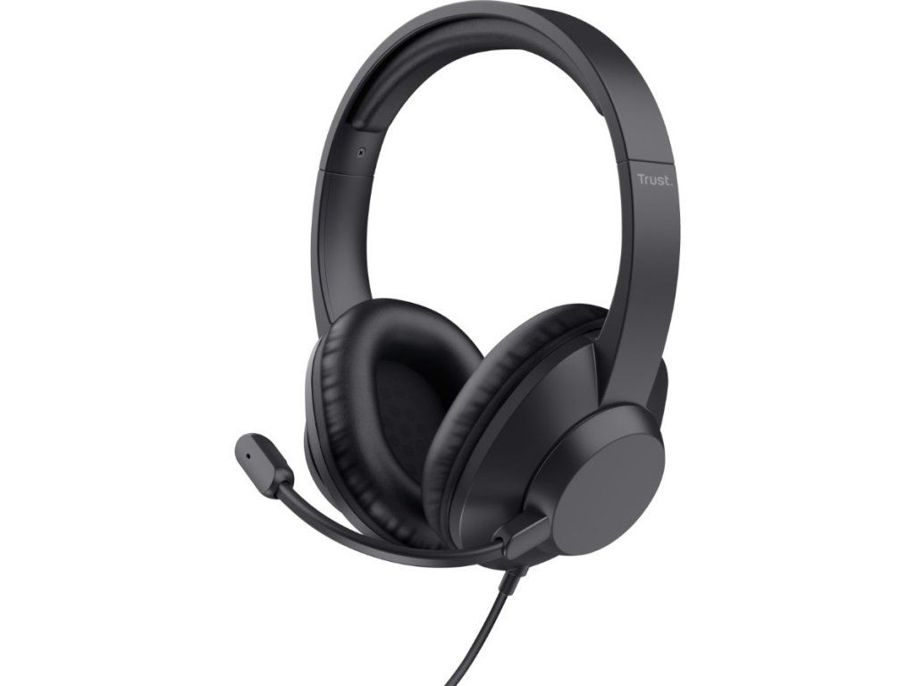 Pohodlná náhlavní souprava přes uši s měkkými náušníky a polstrovanou hlavovou páskou