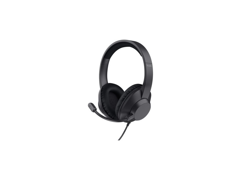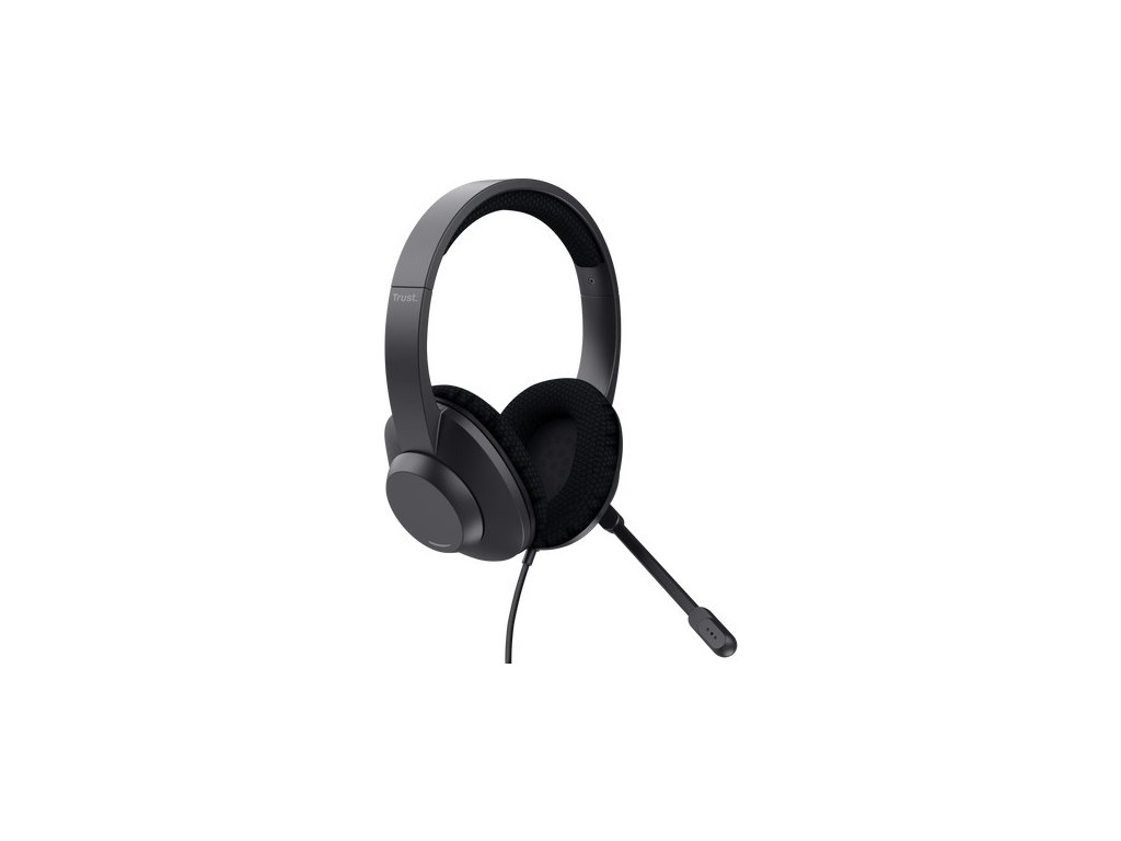 Pohodlná USB sluchátka přes uši s mikrofonem s potlačením hluku a polstrovaným hlavovým mostem.