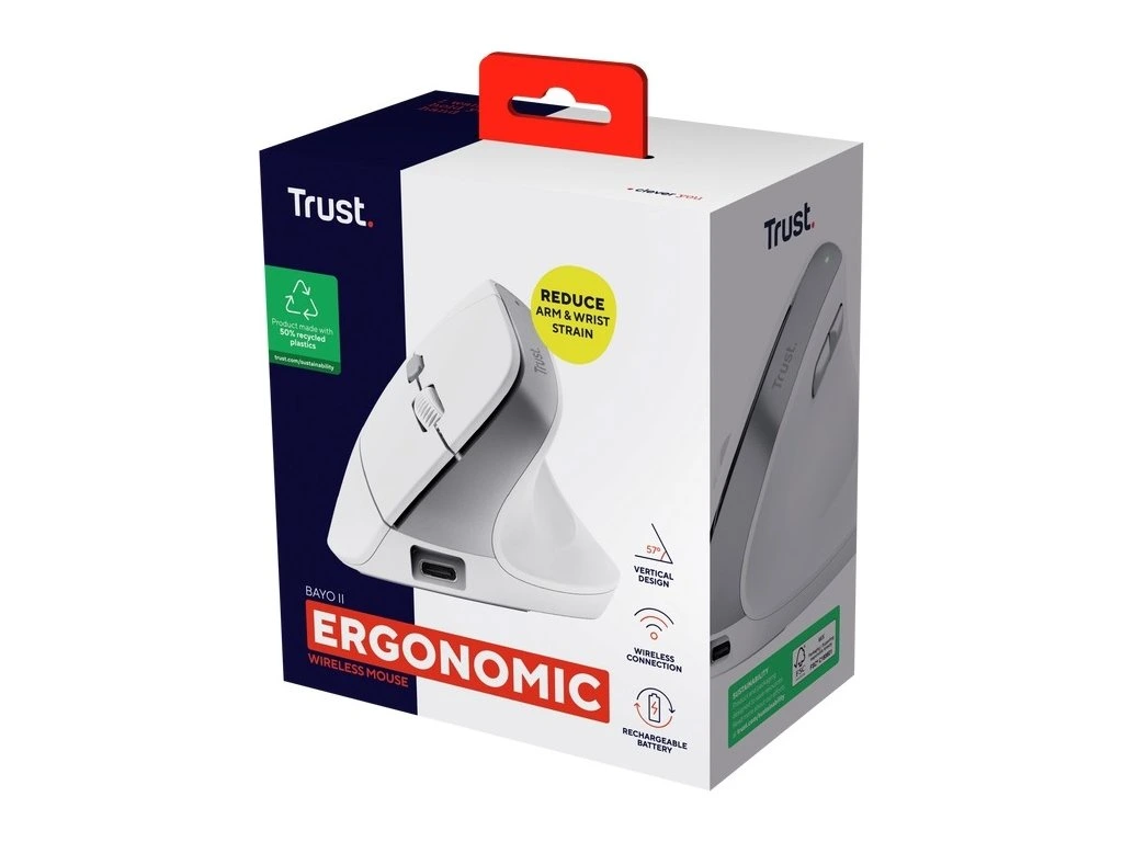 Trust Bayo II/Vertikální/Optická/Pro praváky/2 400 DPI/Bezdrátová USB/Bílá