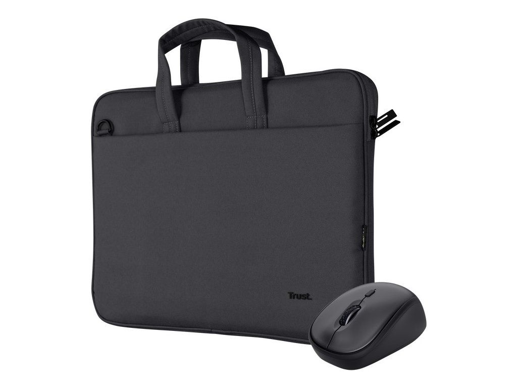 Ekologická sada, která obsahuje brašnu na 16” notebook a tichou bezdrátovou myš – obojí