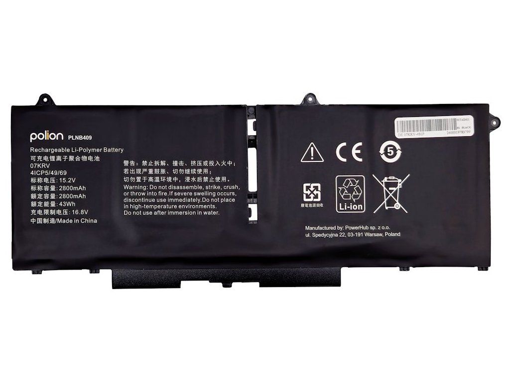 TRX Baterie Polion 07KRV pro notebooky DELL 451-BCWY Latitude 7430 7530 - 2800mAh 43Wh/ neoriginální