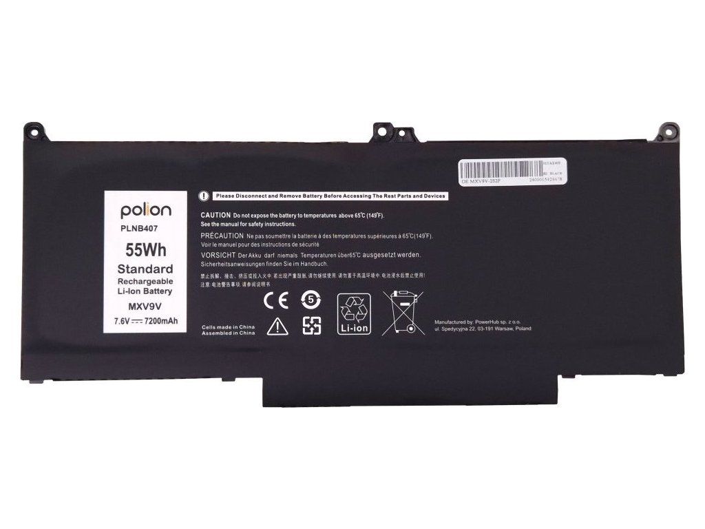 Kompatibilní baterie pro vybrané notebooky Dell. Disponuje ochranou proti hlubokému vybití, přebití a přehřátí. Provozní doba odpovídá originální baterii stejné kapacity.