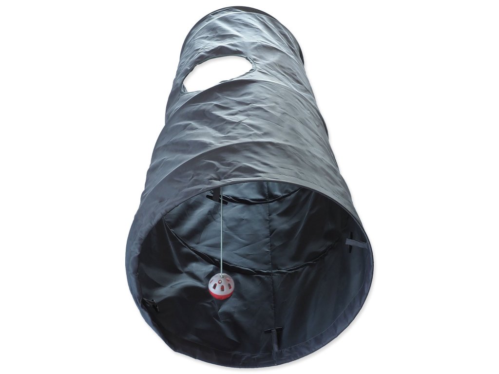 Tunel pro kočky s hračkou.