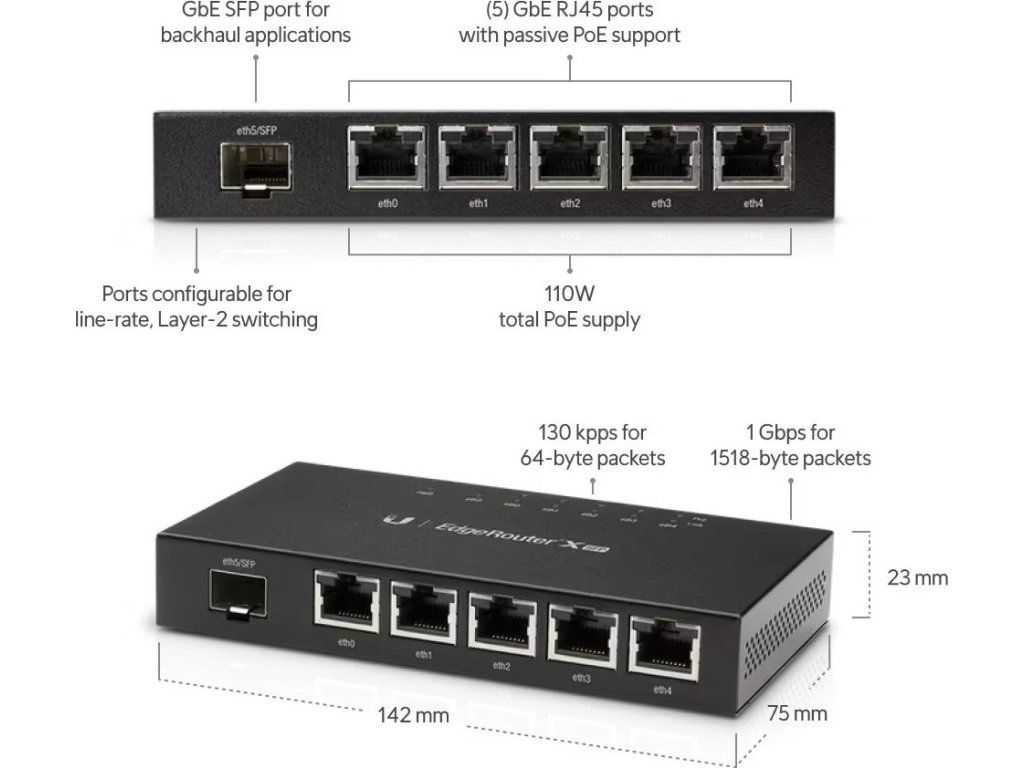 Ubiquiti EdgeRouter X SFP - 5x GbE port, 1x SFP port, 5x PoE 24V (PoE budget 50W)