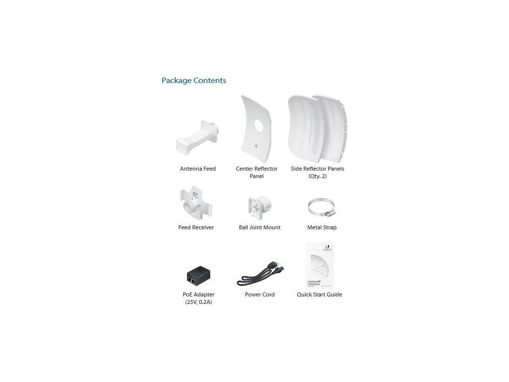 LiteBeam využívá nově navrženou odlehčenou konstrukci antény pro snadnější montáž bez nářadí. Patentovaná technologie InnerFeed integruje celou rádiovou část přímo do zářiče, který je krytý vysoce odolným UV stabilizovaným plastem.